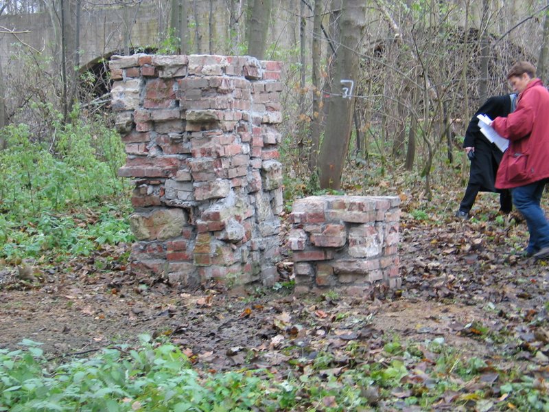 Dieser Ort der ehemaligen Schießstände der Wehrmacht, nicht weit vom einstigen Reichsjägerhof für Herrmann Göring, hat eine bedrückende Aura, der sich kaum jemand entziehen kann. Die Ruinen in dem feuchten verwilderten Waldstück strahlen allein für sich - auch ohne Wissen um deren Geschichte - eine unheimliche und beängstigende Atmosphäre aus. Es ist der Ausdruck von Gewalt, der von diesem Ort ausgeht. Die Graffitis an den Wänden bestätigen dies. „…der mich hindert an die Macht zu kommen, den würde ich umbringen!“ Und in einer Typographie, die von rechtsradikalen Gruppen verwendet wird heißt es: Wählt CDU/CSU, wobei das S in der Form des der SS- Rune gestaltet wurde. An anderer Stelle ist mit schwarzer Farbe eine Hakenkreuzfahne an die Wand gezeichnet aber auch „Nazis raus“ und „Hilfe“.